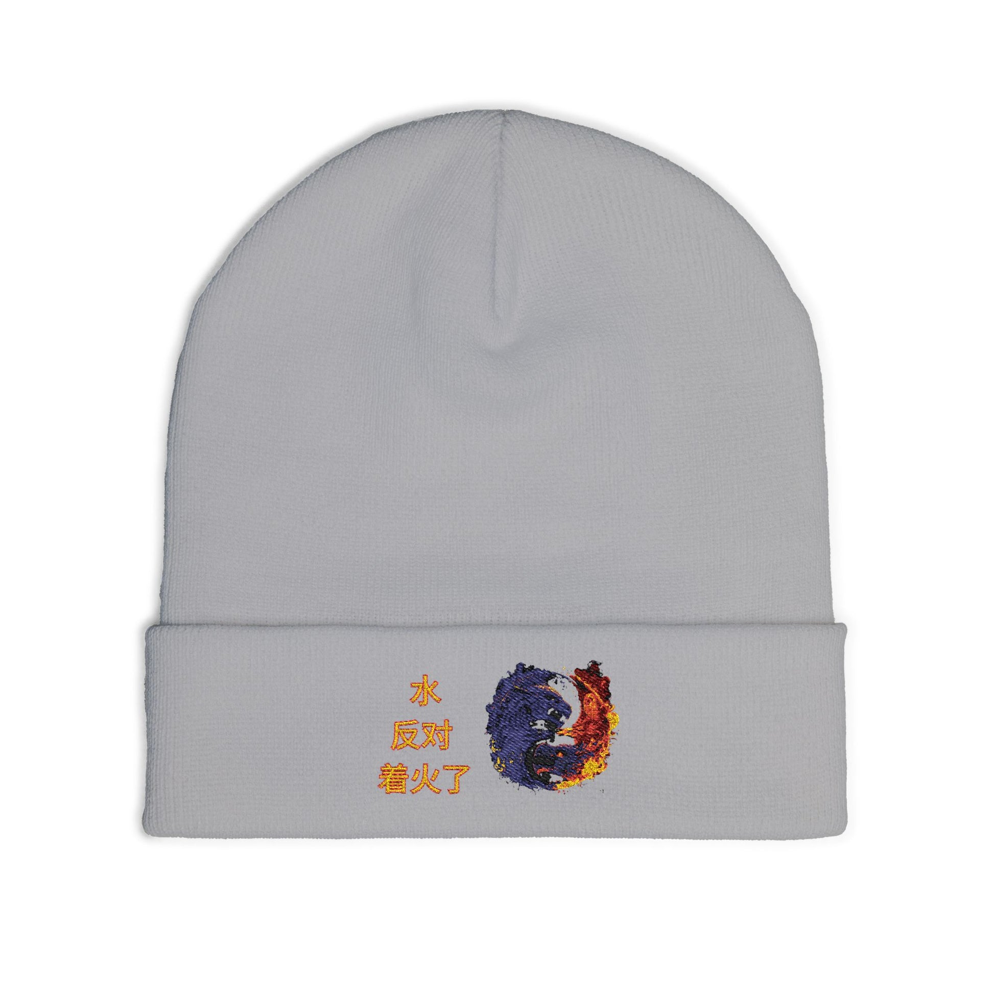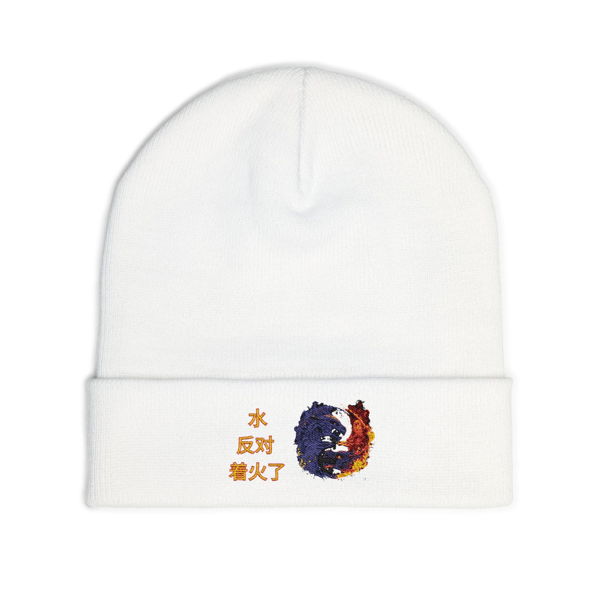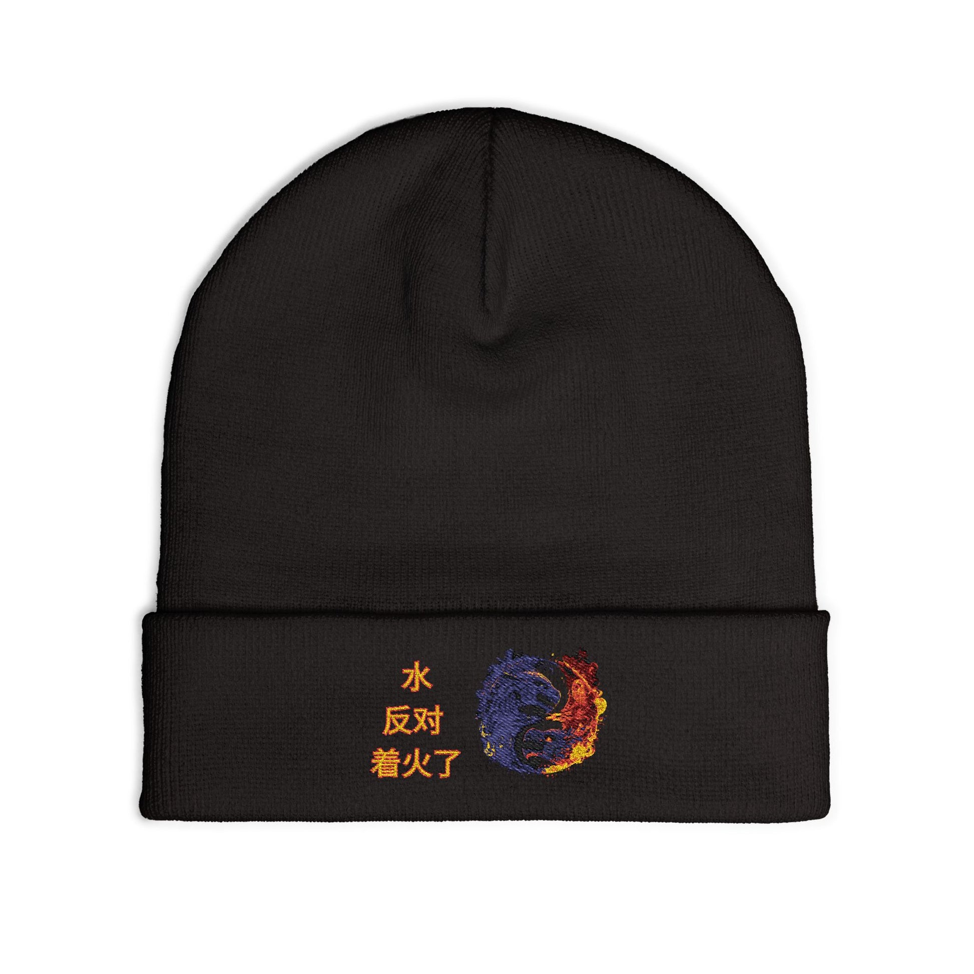 Embroidered Knit Beanie with Yin Yang Design, Cozy Winter Hat, Gifts for Men and Women, Trendy Winter Accessory, Fall Fashion, Festival Wear