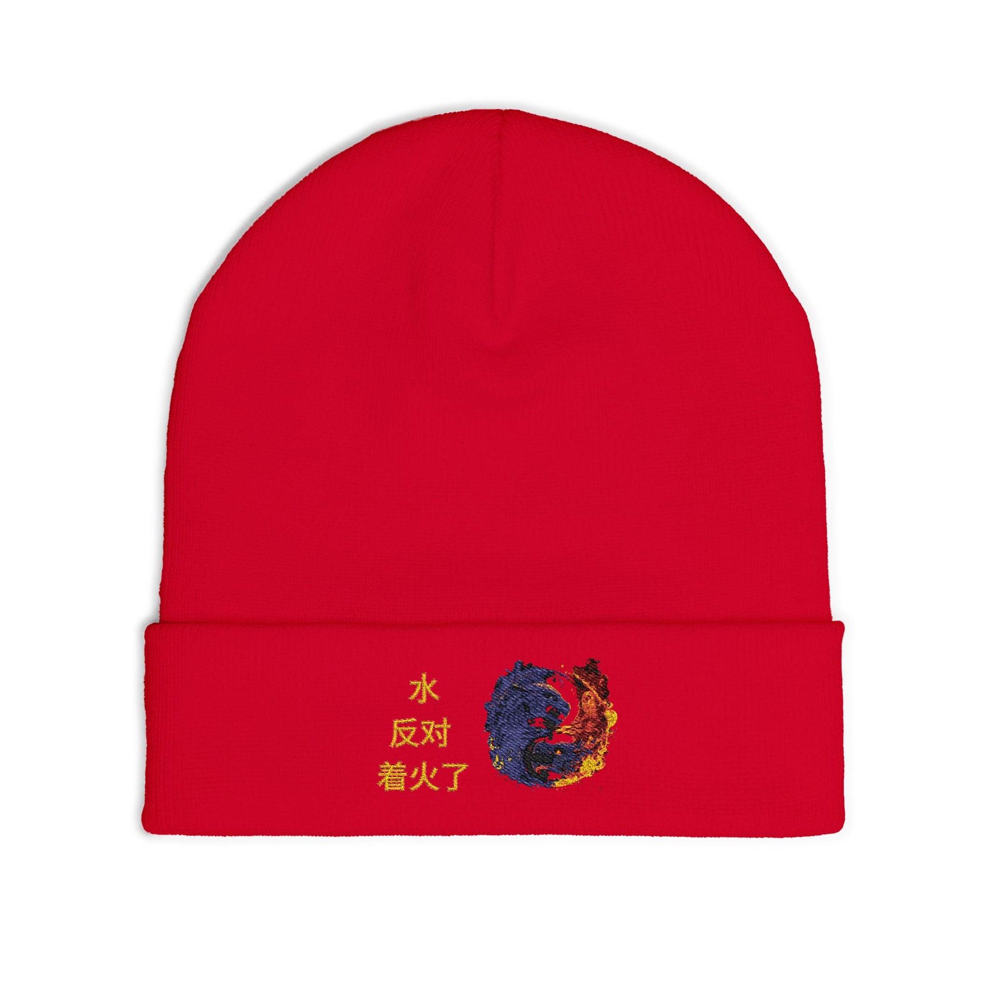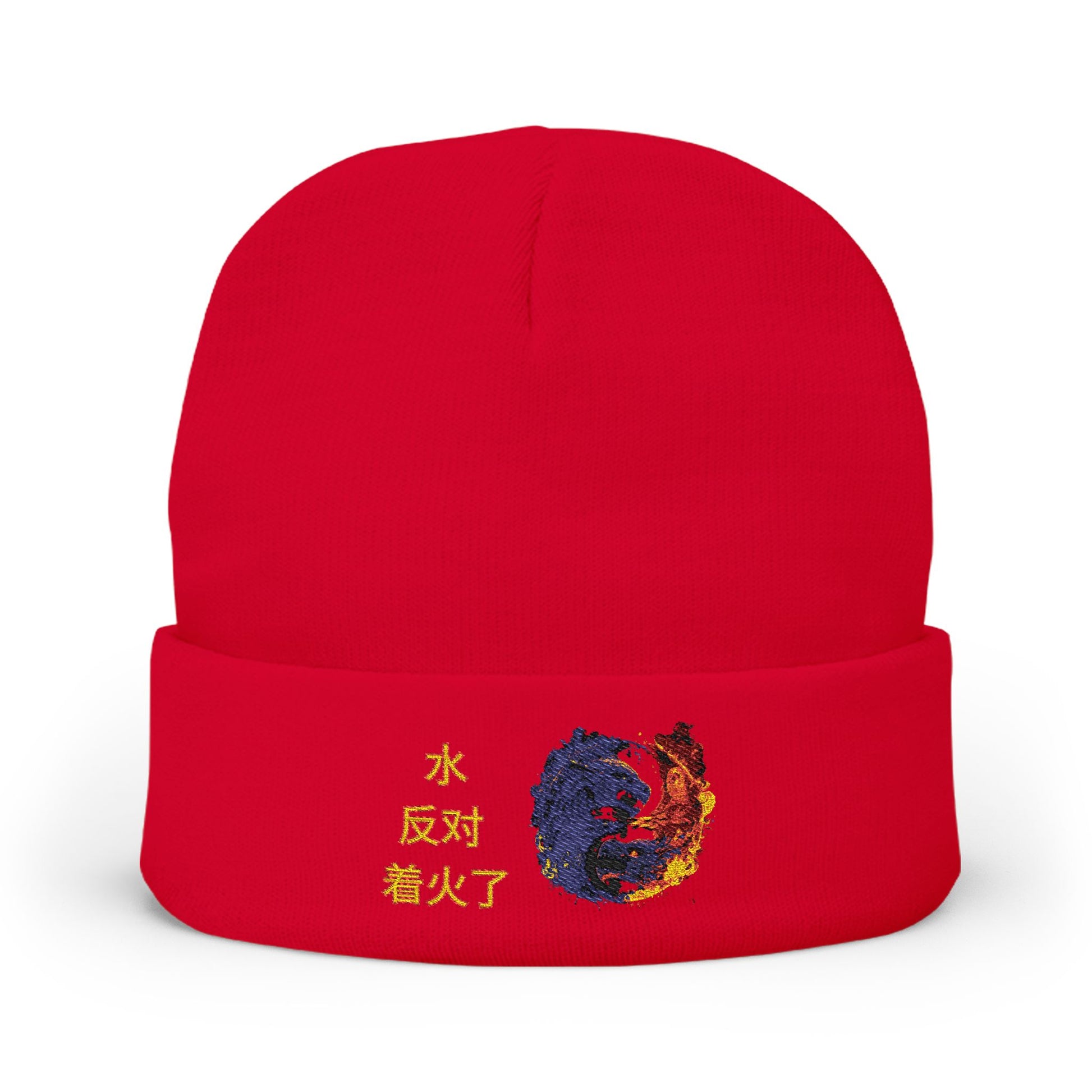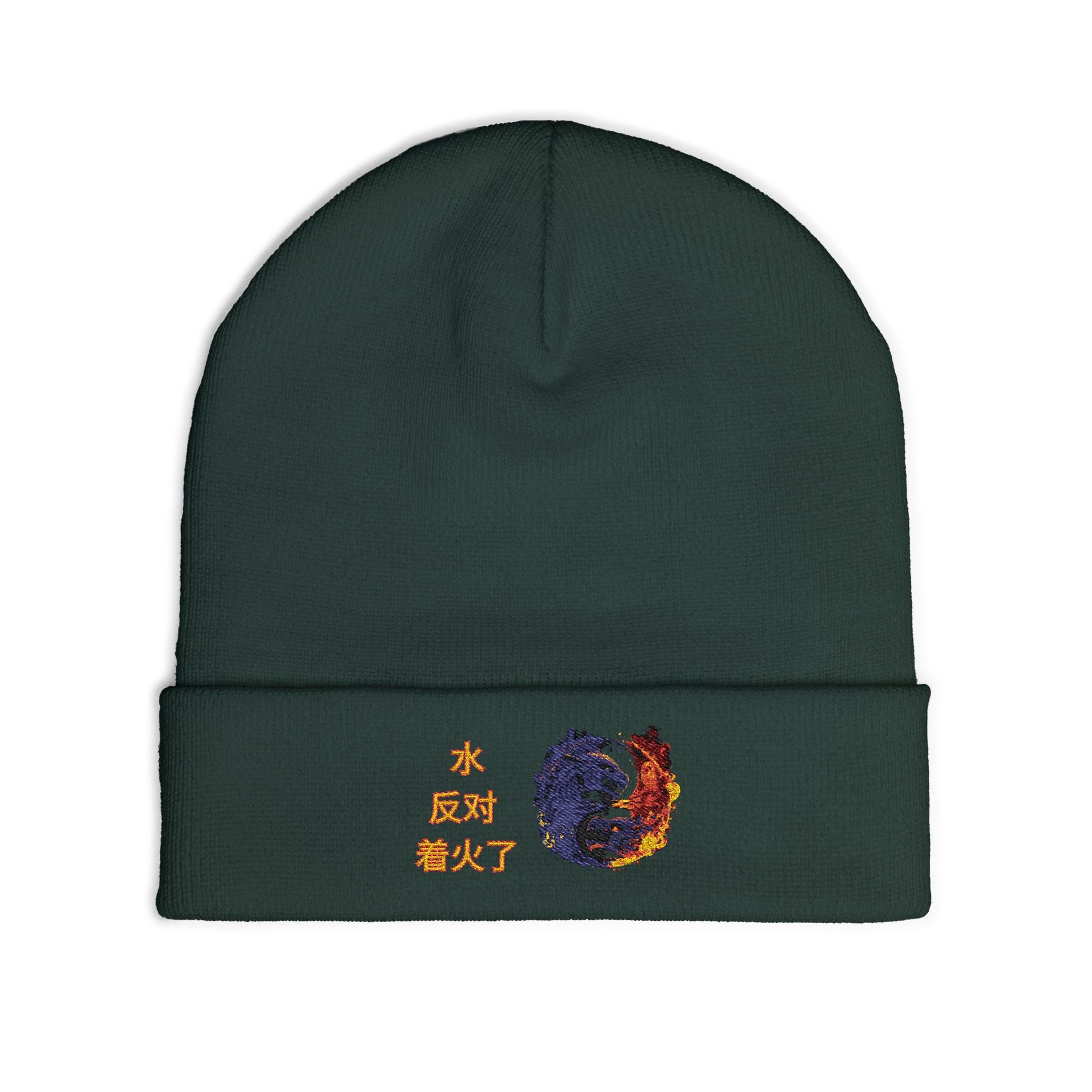 Embroidered Knit Beanie with Yin Yang Design, Cozy Winter Hat, Gifts for Men and Women, Trendy Winter Accessory, Fall Fashion, Festival Wear